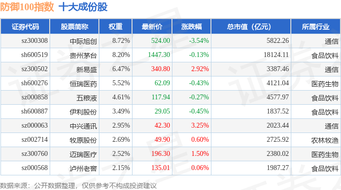 资金流向方面,防御100(399403)指数成份股当日主力资金净流出合计16.4亿元,游资资金净流入合计10.59亿元,散户资金净流入合计5.82亿元。成份股资金流向详情见下表: