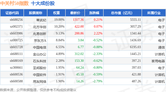 证券之星消息,11月27日,中关村50(399423)指数报收于2878.57点,跌0.24%,成交414.63亿元,换手率0.74%。当日该指数成份股中,上涨的有14家,航天宏图以2.64%的涨幅领涨,下跌的有34家,万泰生物以2.89%的跌幅领跌。
