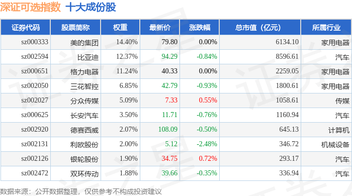 深证可选(399616)指数十大成份股详情如下: