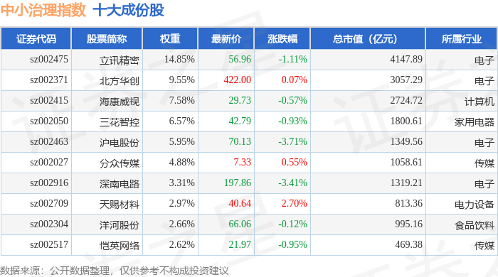 证券之星消息,11月27日,中小治理(399650)指数报收于2491.17点,跌0.4%,成交434.79亿元,换手率1.2%。当日该指数成份股中,上涨的有25家,太阳纸业以3.87%的涨幅领涨,下跌的有24家,沪电股份以3.71%的跌幅领跌。