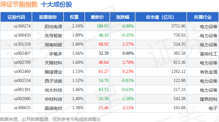 深证节能(399695)指数十大成份股详情如下: