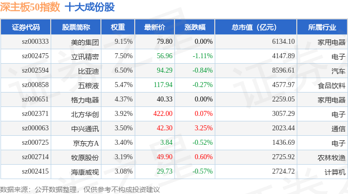 深主板50(399750)指数十大成份股详情如下: