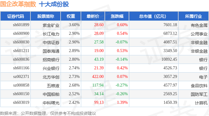 证券之星消息,11月27日,国企改革(399974)指数报收于1837.67点,跌0.04%,成交960.08亿元,换手率0.5%。当日该指数成份股中,上涨的有34家,华鲁恒升以3.61%的涨幅领涨,下跌的有61家,万科A以7.13%的跌幅领跌。