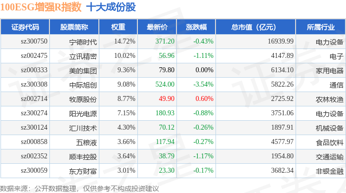 资金流向方面,100ESG增强R(470033)指数成份股当日主力资金净流出合计48.51亿元,游资资金净流入合计19.96亿元,散户资金净流入合计28.55亿元。成份股资金流向详情见下表: