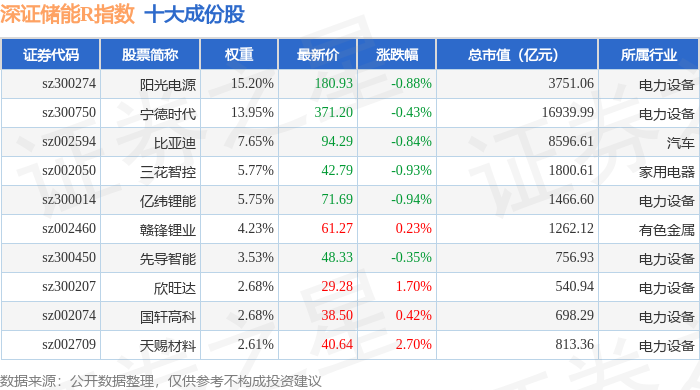 资金流向方面,深证储能R(470036)指数成份股当日主力资金净流出合计12.06亿元,游资资金净流入合计5.87亿元,散户资金净流入合计6.2亿元。成份股资金流向详情见下表: