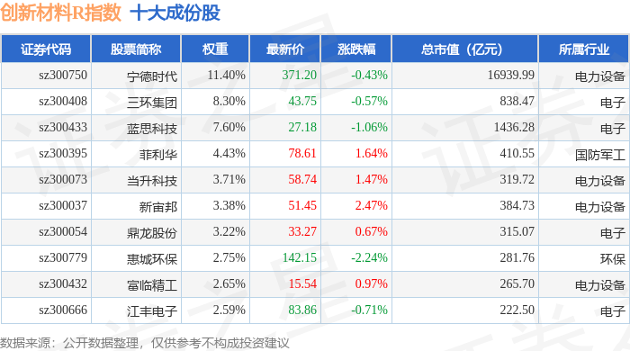 创新材料R(470039)指数十大成份股详情如下: