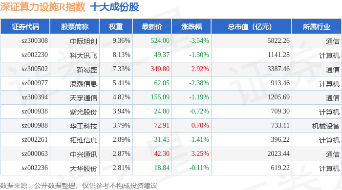 深证算力设施R(470051)指数十大成份股详情如下: