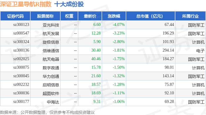 深证卫星导航R(470050)指数十大成份股详情如下: