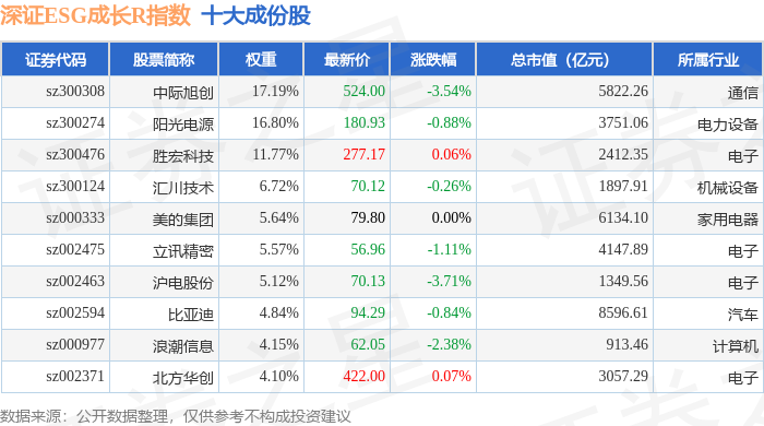 深证ESG成长R(470060)指数十大成份股详情如下: