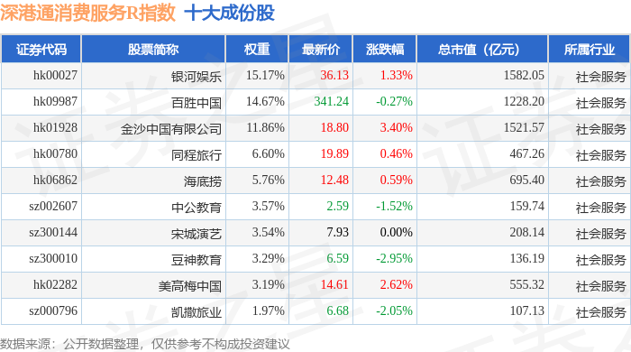 深港通消费服务R(483045)指数十大成份股详情如下: