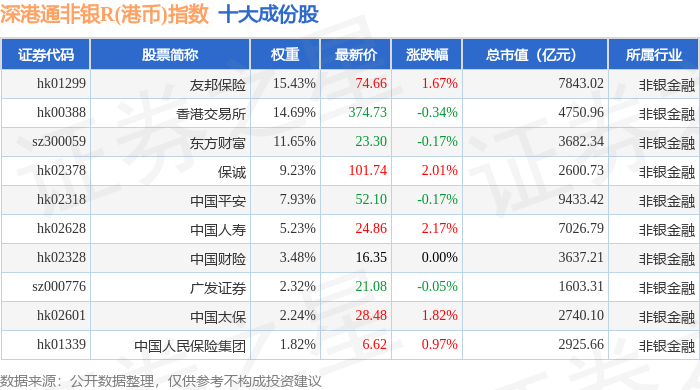 深港通非银R(港币)(483054)指数十大成份股详情如下: