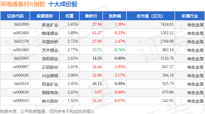 深港通基材R(483061)指数十大成份股详情如下: