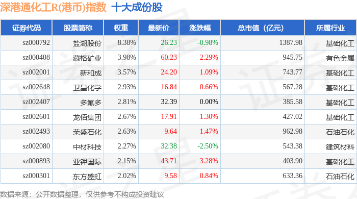 深港通化工R(港币)(483064)指数十大成份股详情如下: