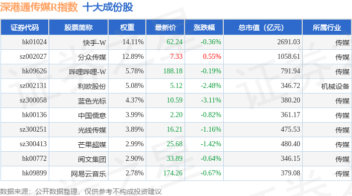 资金流向方面,深港通传媒R(483075)指数成份股当日主力资金净流出合计26.3亿元,游资资金净流入合计3.66亿元,散户资金净流入合计22.64亿元。成份股资金流向详情见下表: