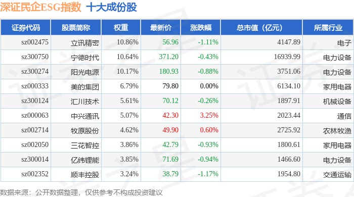 深证民企ESG(970056)指数十大成份股详情如下: