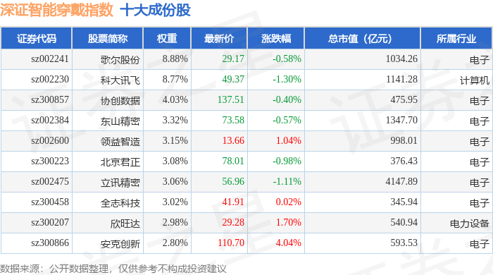 深证智能穿戴(970074)指数十大成份股详情如下: