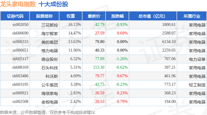 资金流向方面,龙头家电(980028)指数成份股当日主力资金净流出合计1.58亿元,游资资金净流入合计2.34亿元,散户资金净流出合计7631.3万元。成份股资金流向详情见下表: