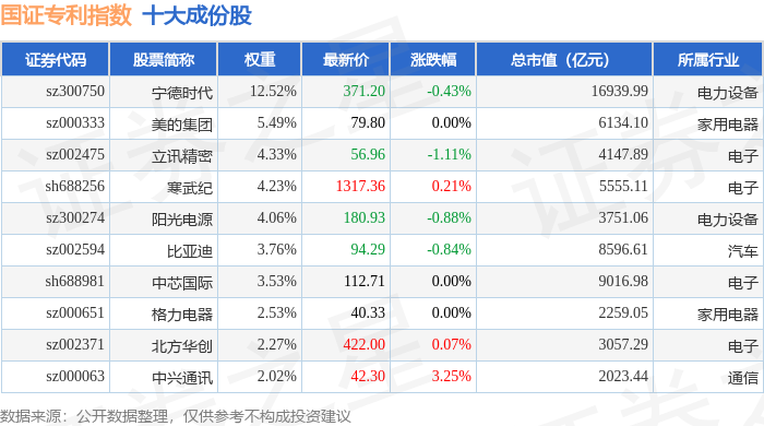 证券之星消息,11月27日,国证专利(980070)指数报收于3552.84点,跌0.29%,成交1486.05亿元,换手率0.84%。当日该指数成份股中,上涨的有28家,云天励飞以4.7%的涨幅领涨,下跌的有63家,晶晨股份以5.31%的跌幅领跌。