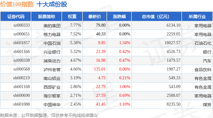 证券之星消息,11月27日,价值100(980081)指数报收于4361.84点,涨0.3%,成交410.38亿元,换手率0.61%。当日该指数成份股中,上涨的有54家,莱克电气以7.76%的涨幅领涨,下跌的有37家,中集集团以4.71%的跌幅领跌。