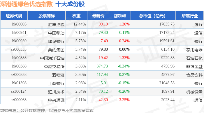 深港通绿色优选(983011)指数十大成份股详情如下: