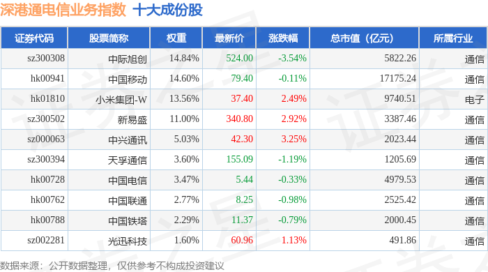 资金流向方面,深港通电信业务(983029)指数成份股当日主力资金净流出合计13.7亿元,游资资金净流入合计7.38亿元,散户资金净流入合计6.33亿元。成份股资金流向详情见下表: