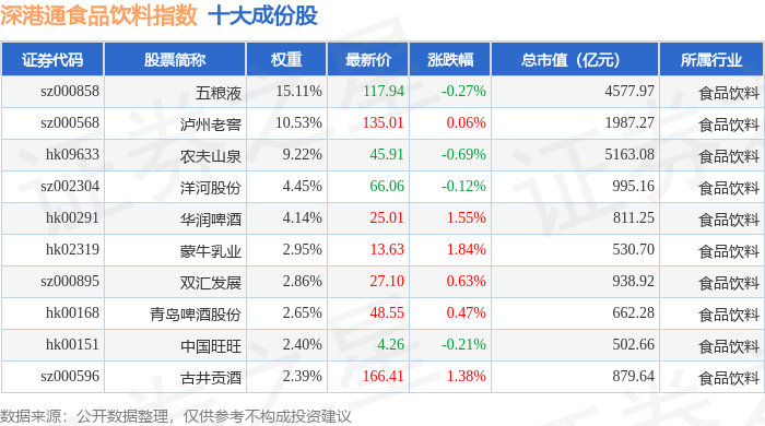 深港通食品饮料(983065)指数十大成份股详情如下: