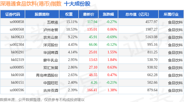 深港通食品饮料(港币)(983066)指数十大成份股详情如下: