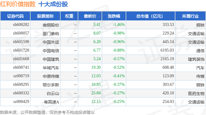 证券之星消息,11月27日,红利价值(989016)指数报收于4394.58点,涨0.33%,成交239.69亿元,换手率0.22%。当日该指数成份股中,上涨的有31家,裕同科技以2.0%的涨幅领涨,下跌的有14家,南钢股份以1.46%的跌幅领跌。
