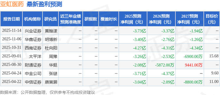 亚虹医药2025年三季报显示,前三季度公司主营收入2.16亿元,同比上升55.74%;归母净利润-2.49亿元,同比上升8.08%;扣非净利润-2.67亿元,同比上升6.69%;其中2025年第三季度,公司单季度主营收入8617.08万元,同比上升47.41%;单季度归母净利润-8673.28万元,同比上升0.14%;单季度扣非净利润-8970.67万元,同比下降0.71%;负债率19.2%,投资收益1471.07万元,财务费用576.39万元,毛利率74.76%。