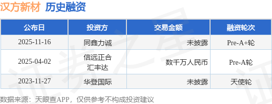 证券之星消息,根据天眼查APP于11月16日公布的信息整理,汉方新材料科技(广州)有限公司Pre-A+轮融资,融资额未披露,参与投资的机构包括同鑫力诚。