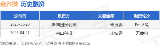 证券之星消息,根据天眼查APP于11月20日公布的信息整理,株洲金齐微科技有限公司Pre-A轮融资,融资额未披露,参与投资的机构包括株洲国投创投。