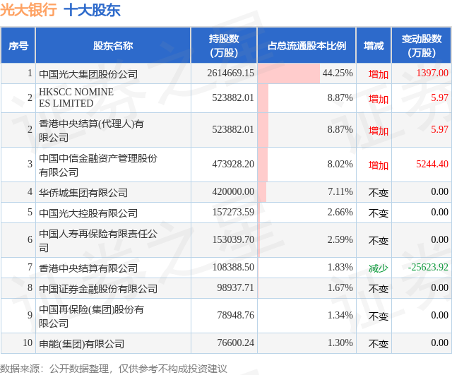 根据光大银行2025年三季报公布的十大股东详情如下: