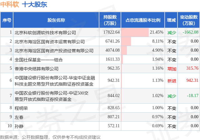 根据中科软2025年三季报公布的十大股东详情如下: