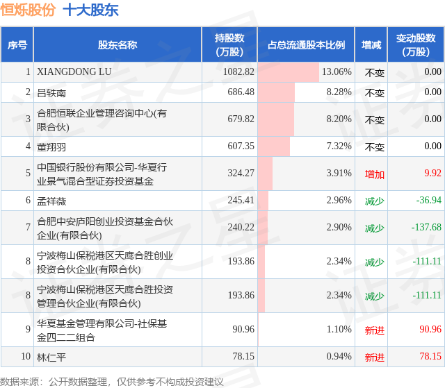 根据恒烁股份2025年三季报公布的十大股东详情如下: