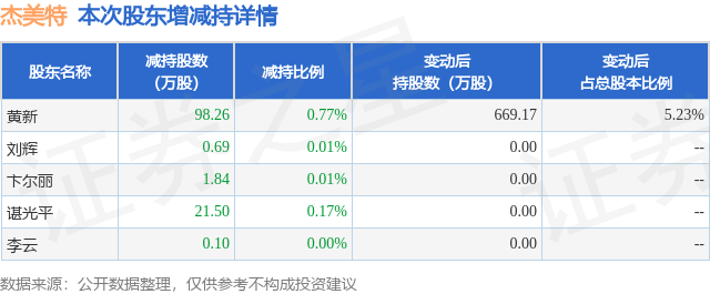 根据杰美特2025年三季报公布的十大股东详情如下: