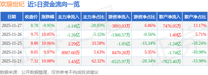 11月27日的资金流向数据方面,主力资金净流出1.14亿元,占总成交额20.03%,游资资金净流入3893.03万元,占总成交额6.86%,散户资金净流入7476.05万元,占总成交额13.17%。