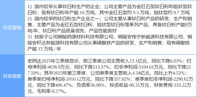 该股为钛白粉,有色 · 钛,磷酸铁锂概念热股,当日钛白粉概念上涨4.96%,有色 · 钛概念上涨3.8%,磷酸铁锂概念上涨2.94%。