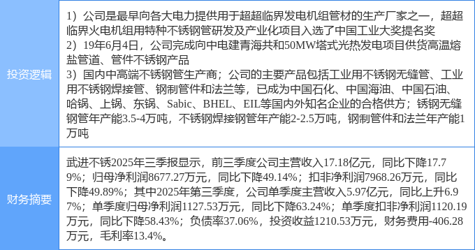 证券之星消息,武进不锈11月28日涨停收盘,收盘价10.54元。该股于13点0分涨停,未打开涨停,截止收盘封单资金为1.23亿元,占其流通市值2.07%。