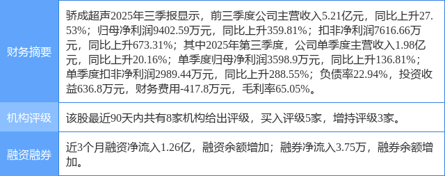 2025年10月30日,东吴证券研究员曾朵红,阮巧燕,朱家佟发布了对骄成超声的研报《2025年三季报点评:业绩符合预期,先进封装实现突破》,该研报对骄成超声给出“买入”评级。研报中预计公司25-27年归母净利1.3/2.4/4.1亿元(此前预期1.5/3.0/5.0亿元),同比+57%/+75%/+72%,对应PE99/57/33x,维持“买入”评级。证券之星数据中心根据近三年发布的研报数据计算,该研报作者对此股的盈利预测准确度为72.59%。