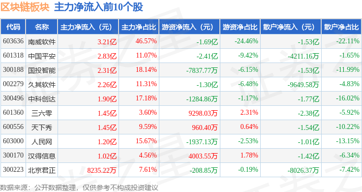 从资金流向上来看,当日区块链板块主力资金净流出4.54亿元,游资资金净流出1.38亿元,散户资金净流入5.93亿元。区块链板块个股资金流向见下表: