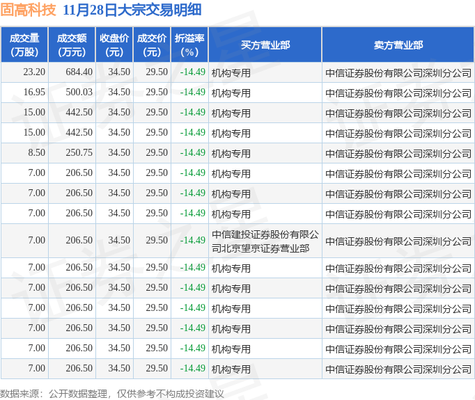 证券之星消息,11月28日固高科技发生大宗交易,交易数据如下: