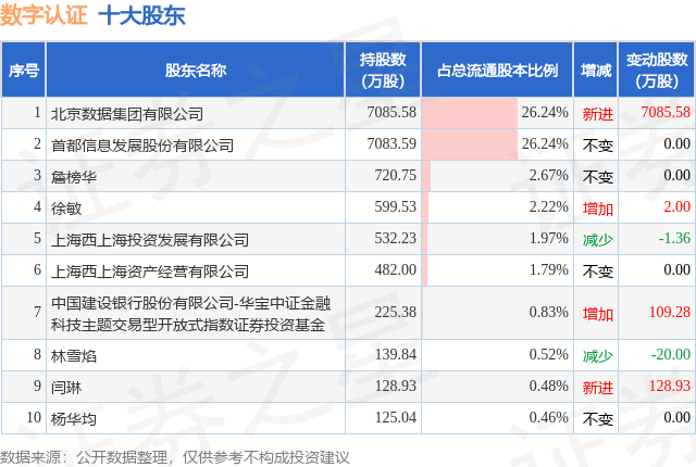 根据数字认证2025年三季报公布的十大股东详情如下: