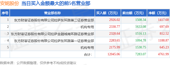证券之星消息,沪深交易所2025年11月28日公布的交易公开信息显示,安妮股份(002235)因日换手率达到20%的前5只证券登上龙虎榜。此次是近5个交易日内第3次上榜。