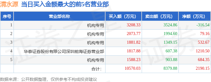 证券之星消息,沪深交易所2025年11月28日公布的交易公开信息显示,清水源(300437)因日换手率达到30%的前5只证券登上龙虎榜。此次是近5个交易日内第5次上榜。