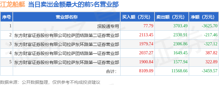 从龙虎榜公布的当日买卖数据来看,北向资金合计净卖出3625.7万元。
