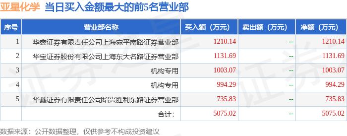 证券之星消息,沪深交易所2025年11月28日公布的交易公开信息显示,亚星化学(600319)因有价格涨跌幅限制的日收盘价格涨幅偏离值达到7%的前五只证券登上龙虎榜。此次是近5个交易日内第1次上榜。