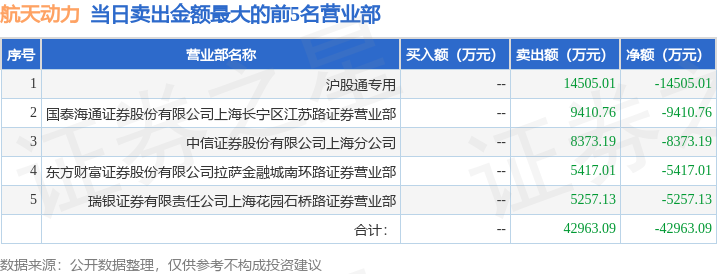 证券之星消息,沪深交易所2025年11月28日公布的交易公开信息显示,航天动力(600343)因有价格涨跌幅限制的日换手率达到20%的前五只证券登上龙虎榜。此次是近5个交易日内第4次上榜。