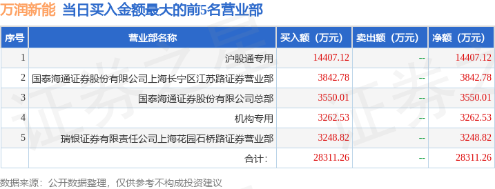 证券之星消息,沪深交易所2025年11月28日公布的交易公开信息显示,万润新能(688275)因有价格涨跌幅限制的日收盘价格涨幅达到15%的前五只证券登上龙虎榜。此次是近5个交易日内第1次上榜。