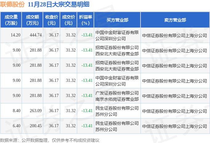 证券之星消息,11月28日联德股份发生大宗交易,交易数据如下: