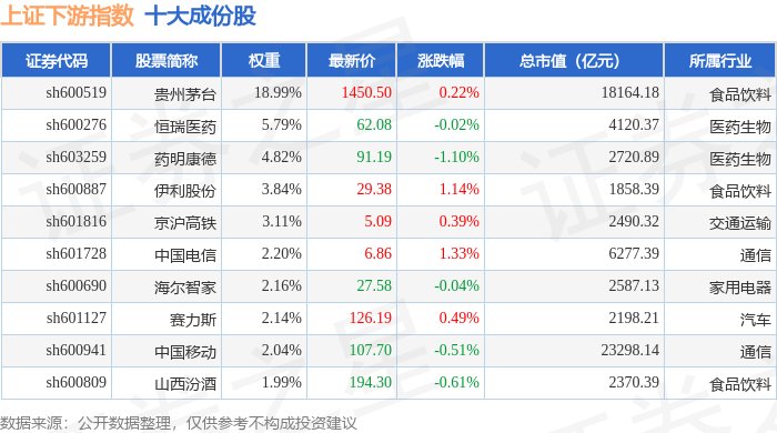 上证下游(000096)指数十大成份股详情如下: